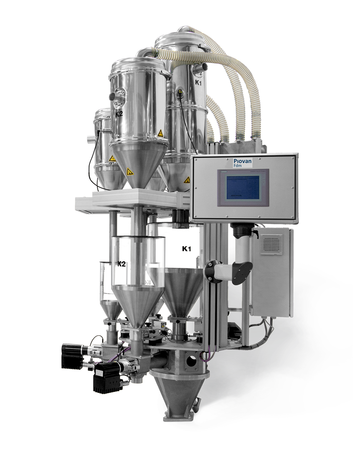 Die hochwertige Wägezelle misst den Gewichtsverlust der einzelnen Komponenten und die Servoantriebe regeln den Durchsatz der einzelnen Komponenten.