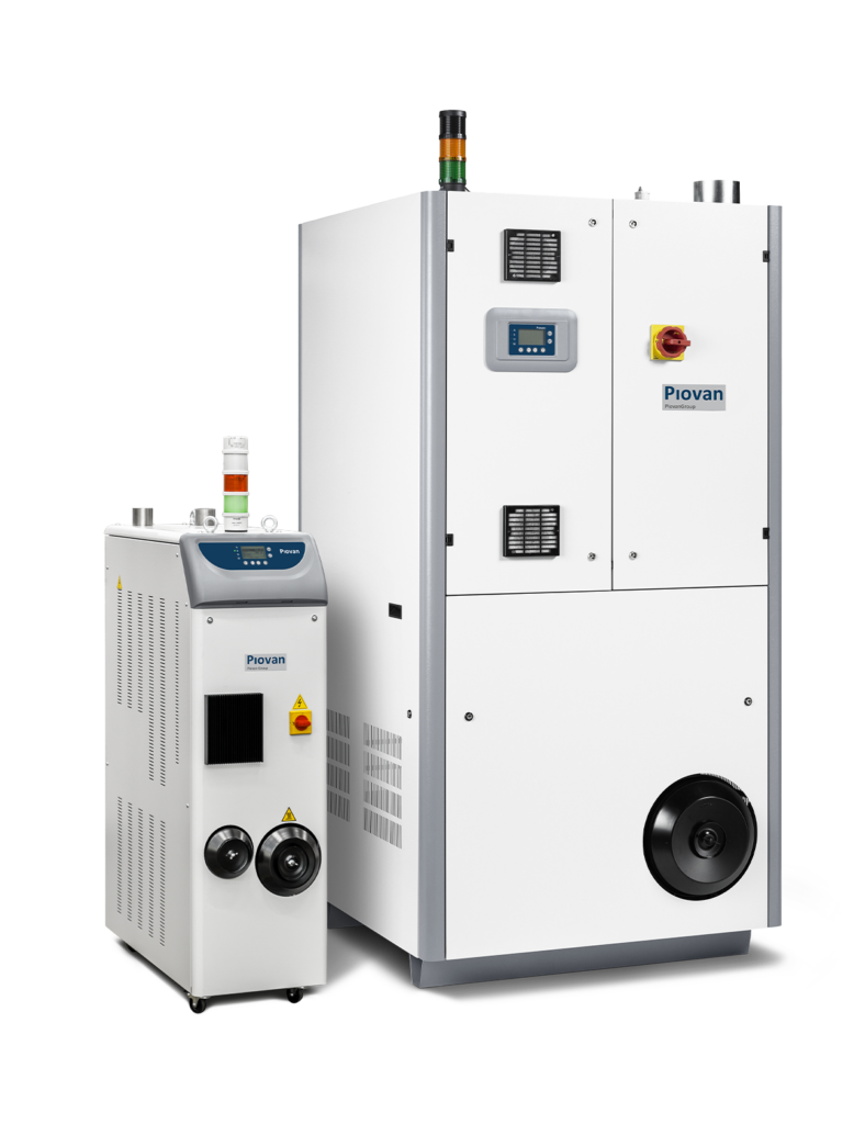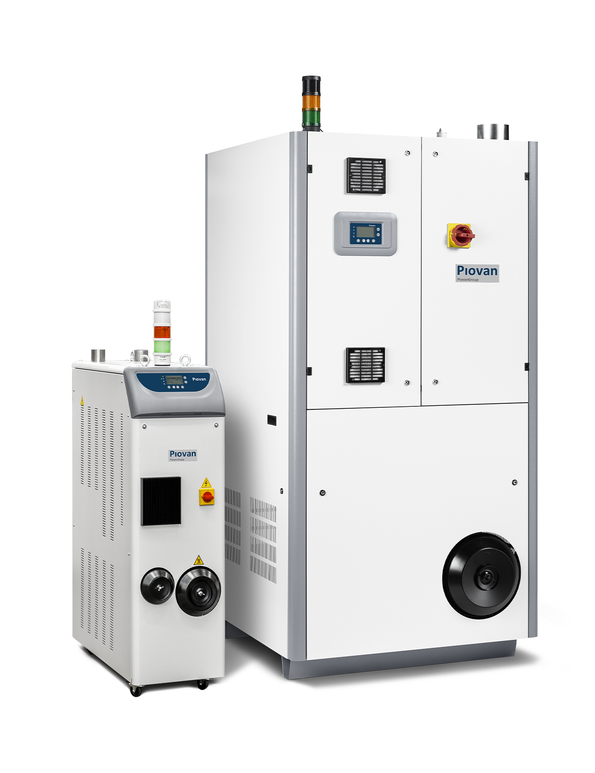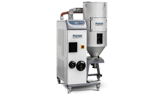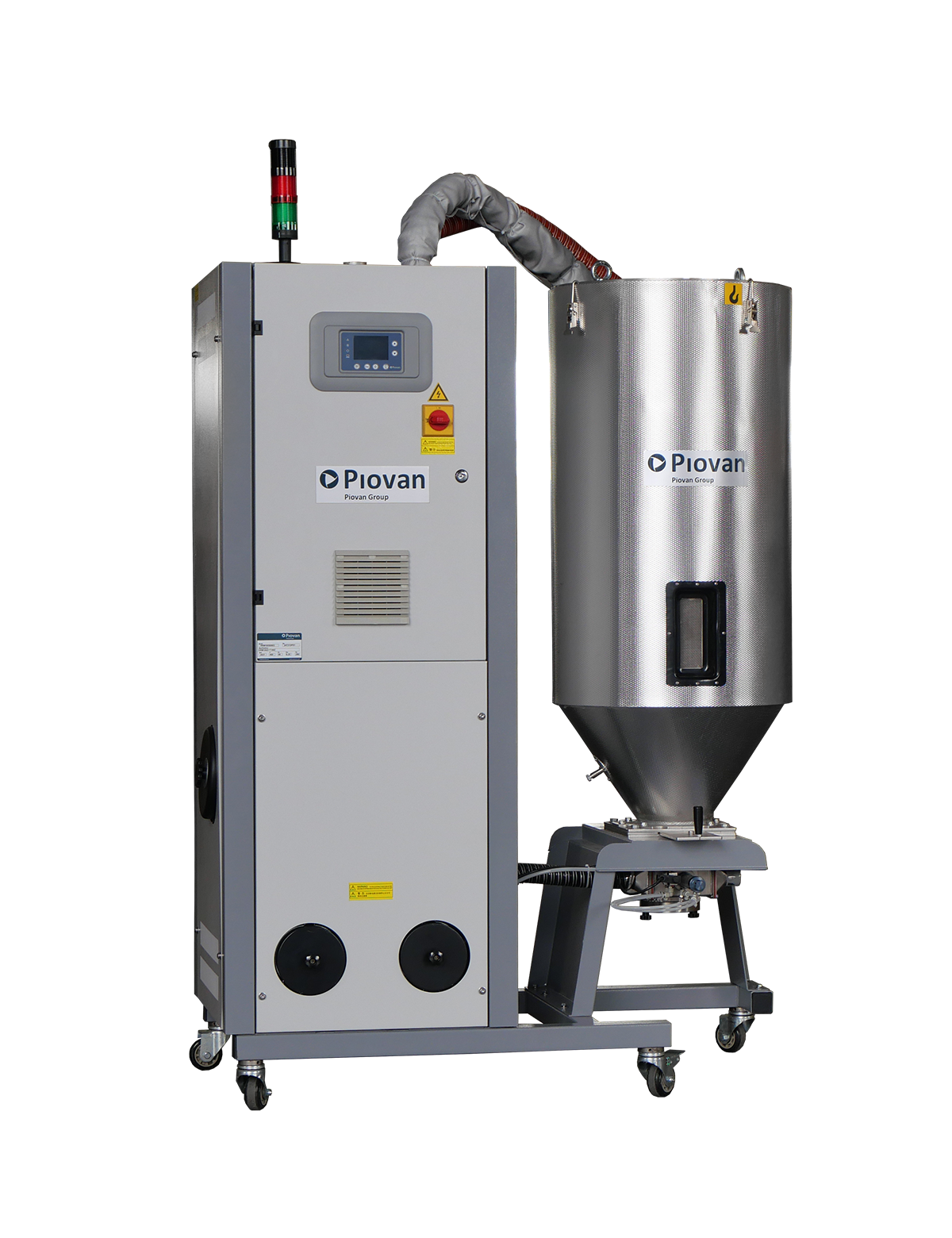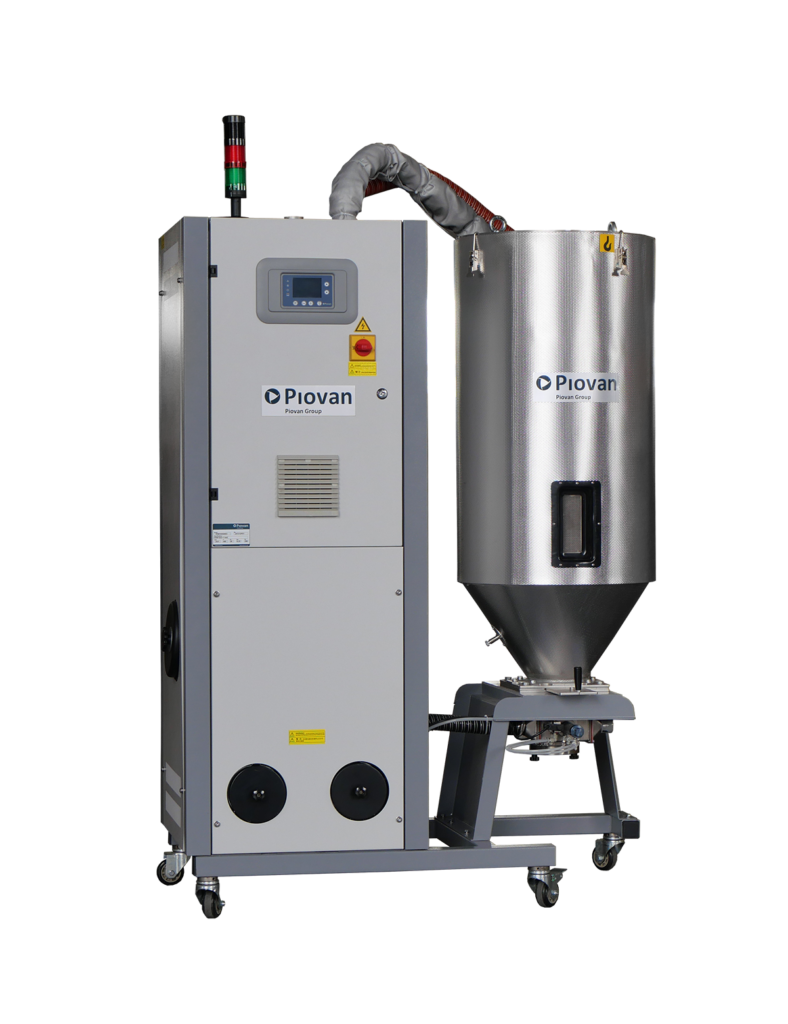 Der Trockenbehälter kann auf der Prozessmaschine oder daneben installiert werden; auch eine Montage auf einem Wagen ist möglich.