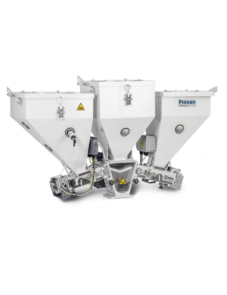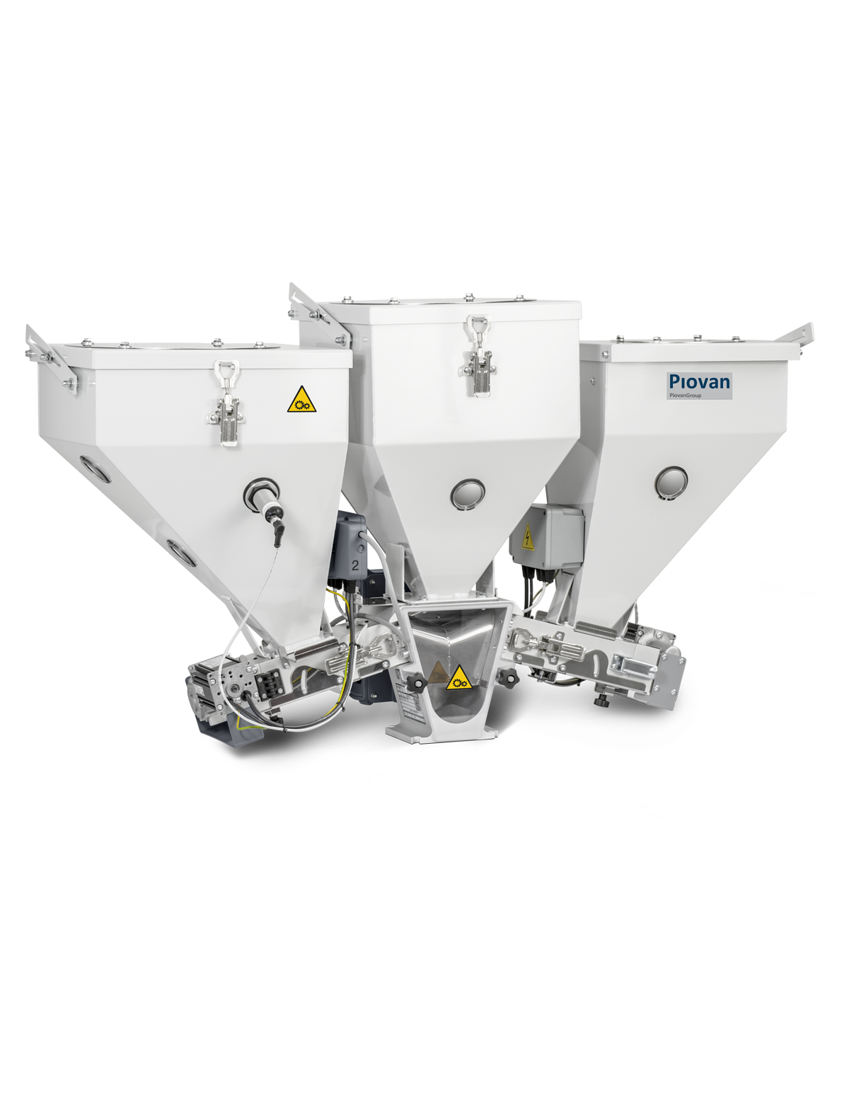 Volumetrische Dosiereinheiten mit einer oder zwei Stationen, mit einem Durchsatz von bis zu 150 kg/h.