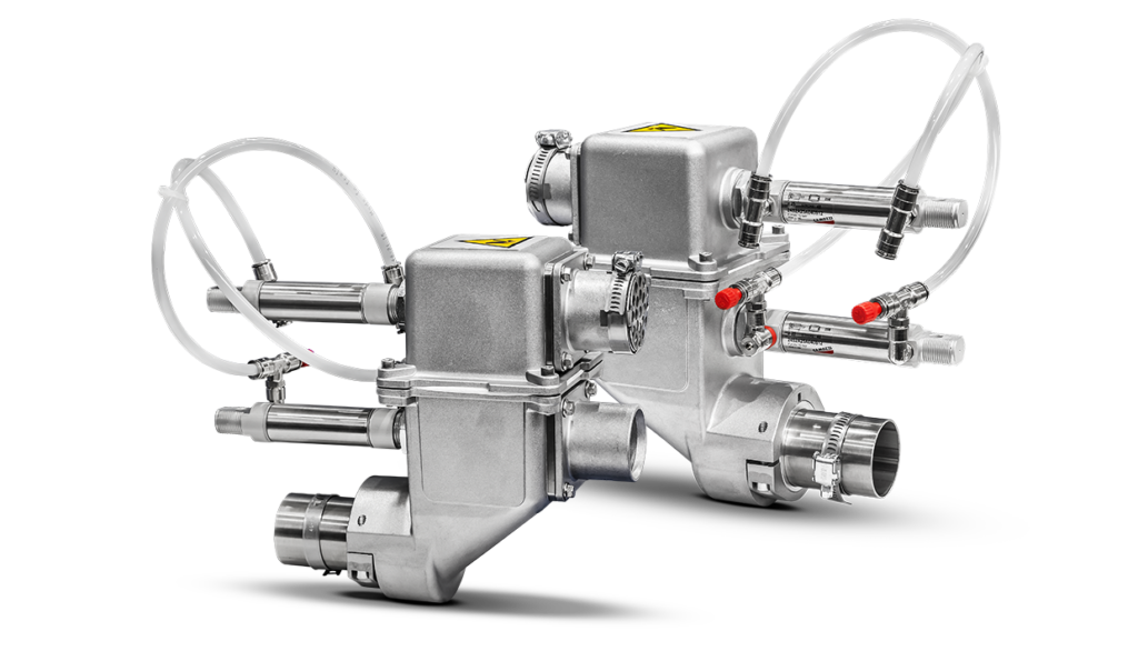 Möglichkeit zur Verwaltung des Mahlguts an der Maschine (VP) und Gewährleistung einer stets sauberen Transportleitung (VPC) oder Abdichtung (NAS) ggü. anderen Fördergeräten bei materialbezogener Förderleitung oder über Kupplungsbahnhof.